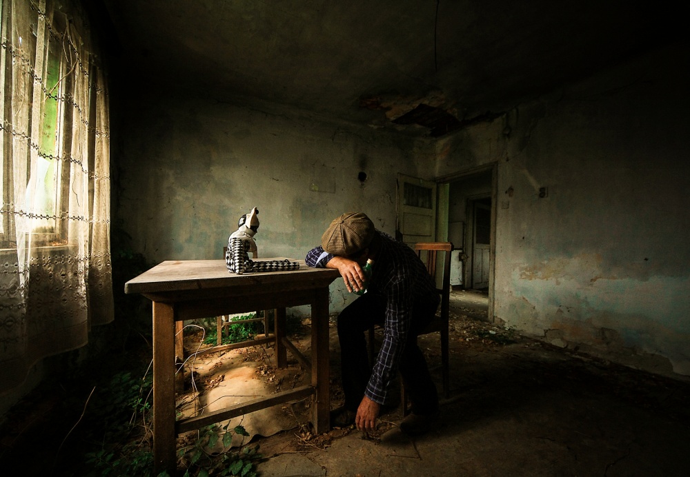 Most of the time, I work alone and I am the photographer and the model at the same time. That's why I always use a tripod. It can be difficult to find "models“ for my picture stories. People don't like posing, they don't have suitable clothes, they don't have time or they are just not in the mood. From time to time I manage to arrange some shooting sessions with my friends. Lucky Bobby is one of my friends who likes helping me and sometimes gives me great ideas, too. All my photos were shot with daylight and I always use a wide angle lens which is my favourite. Most of the photos were taken in abandoned houses because I associate that kind of place with the characters from the past. I am not into modern stuff. Furthermore, I am not interested in stereotypes either. Everything out of the ordinary, surreal and with a bit of dark atmosphere intrigues me. I am inspired by David Lynch, Edgar Alan Poe, Franceska Woodman, Jan Saudek, Ed Van der Elsken, Henry Cartier-Bresson, Robert Frank and Andy Warhol.