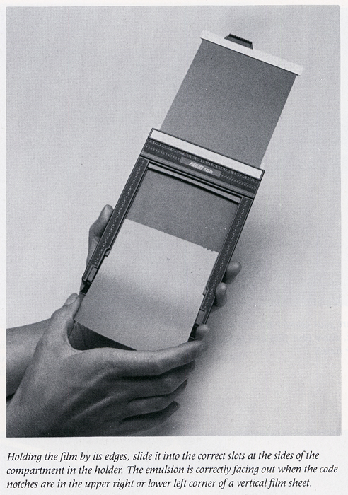 So let's go for it. Time for the thrill of your life. Fill in a couple of film holders with some sheets. Don't forget, total darkness on loading. It takes practice. Do it first in the clear with some wasted sheets or cut some paper to the right size to practice.