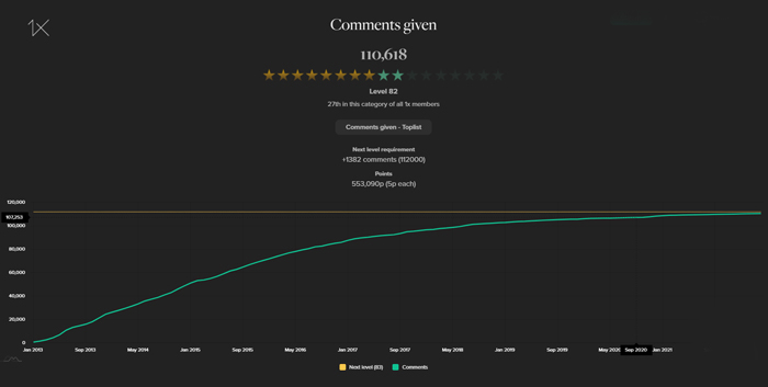 We have greatly redesigned the top lists and created a whole new activity feature where you can see detailed statistics of all your activities on 1x, including levels (0-100) for each category.