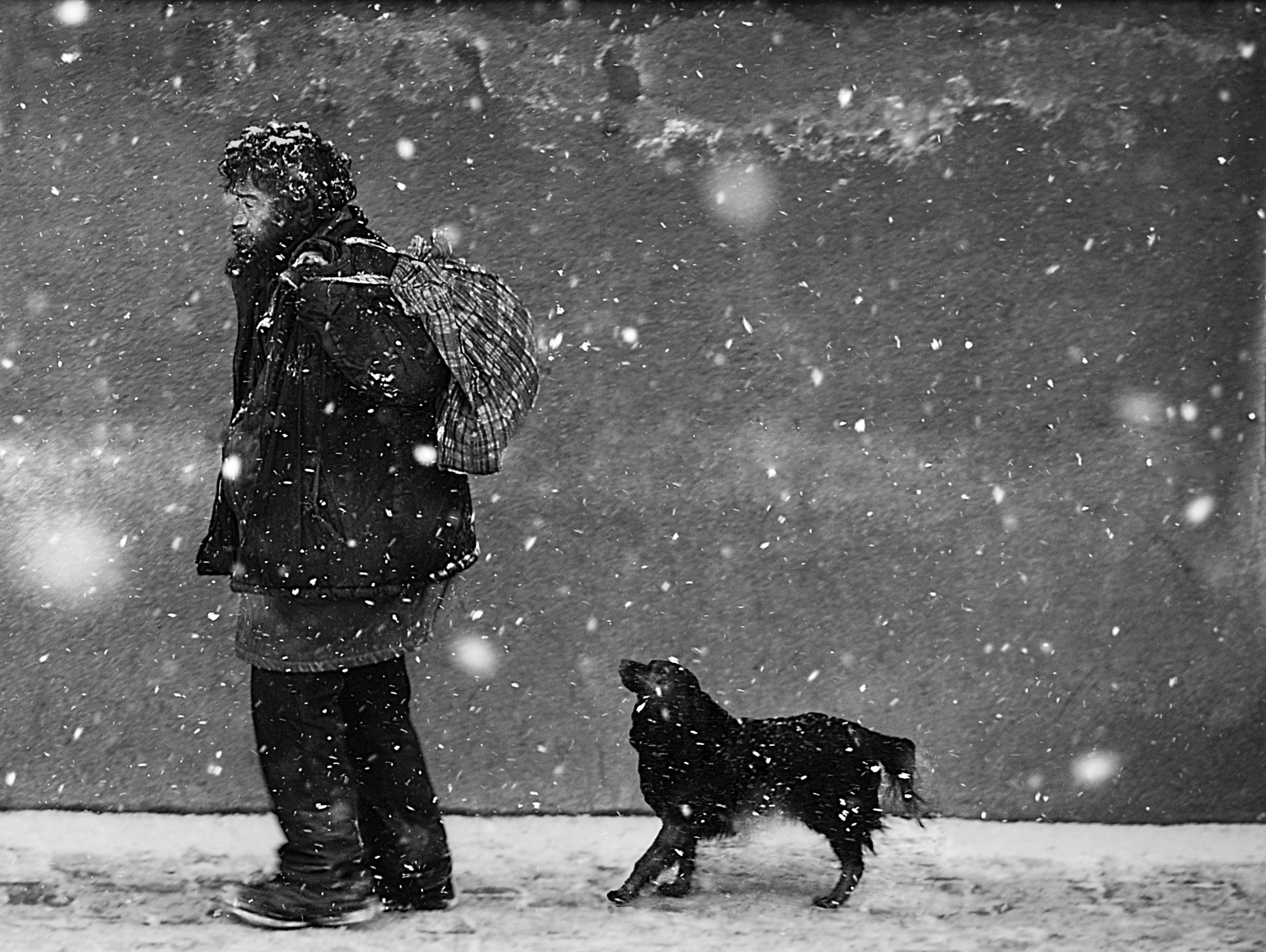 Watching a lot around me. There are characters in my portfolio whom I have known from the streets. For them, I was waiting until the perfect moment. One of these characters is the man with the dog in the snowfall. I catched them from my office's window.