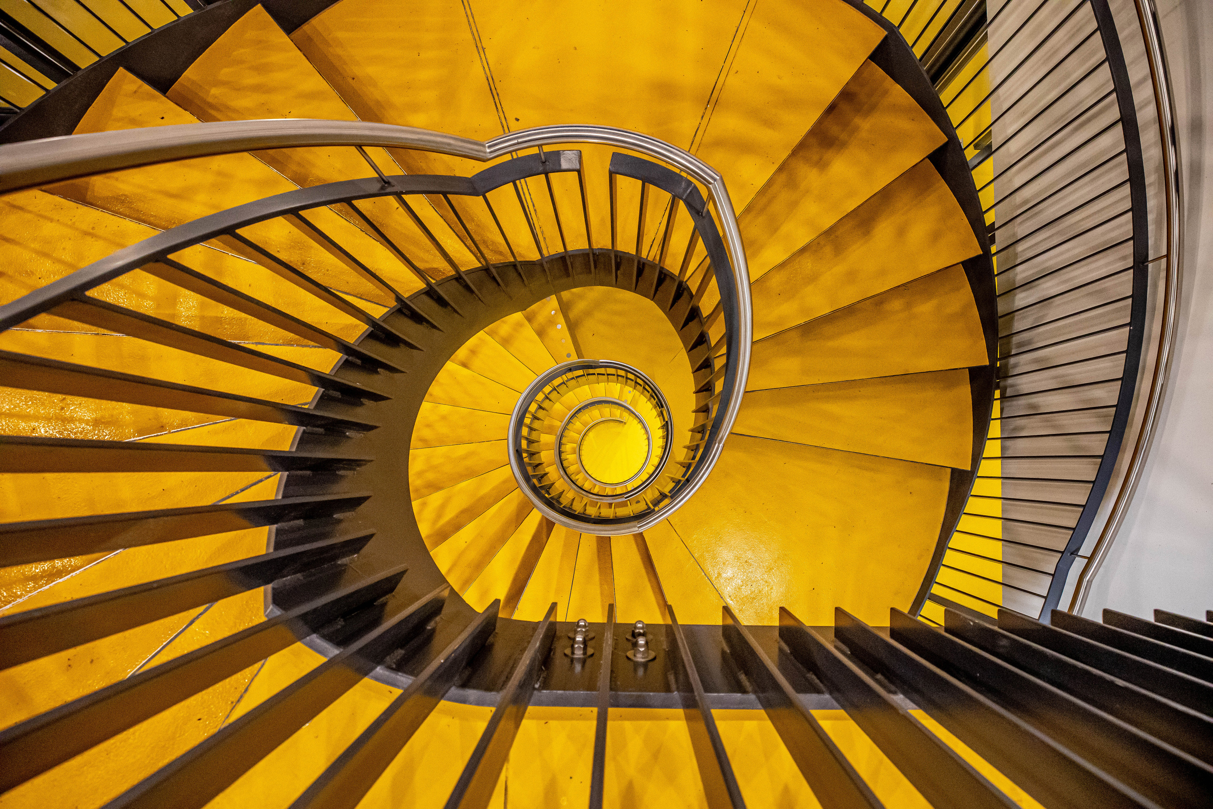 I have a Canon EOS 5D Mark IV now and I usually use my Canon 24-70 f/2.8 lens. For abstract photography, such as a part of a building, I use my Canon 70-200 f/2.8. I especially use my Canon 16-35 2.8 for spiral stairs.